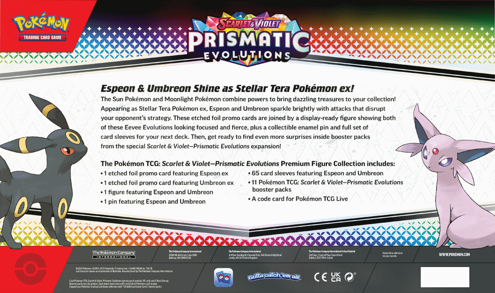 - 11 Pokémon TCG Scarlet & Violet Prismatic Evolutions boosterpacks;